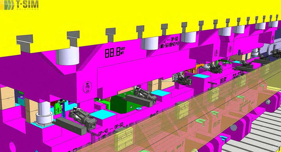 With the capabilities enabled by the T-Sim software, Die Cad can analyze incoming part files, fix clash and clearance violations, identify required tool design changes, and make adjustments to achieve the highest SPM without having to go through physical trial and error on the stamping floor. This applies to servo, mechanical and hydraulic presses, regardless of manufacturer.