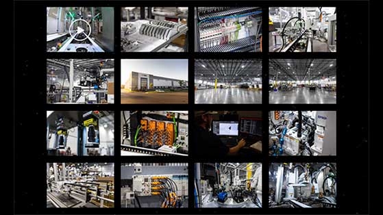 The handling robot then moves the part to the rivet nut station where two robots apply 66 float nuts, fed to the robots via a pneumatic tube. The nuts go in and are crimped using amperage as an indicator if the nut is properly secured. At the end of this process, all six robots communicate with the material handling robot to determine good or bad part.