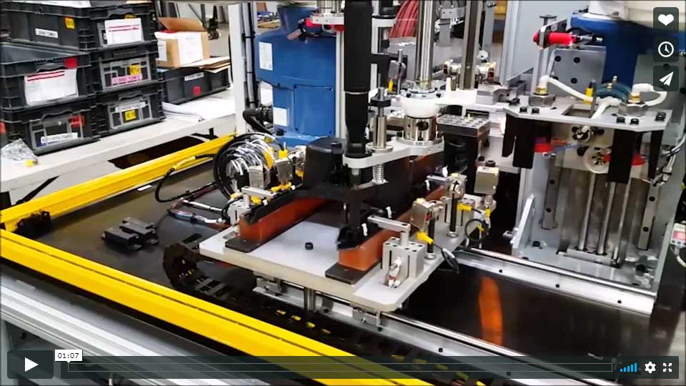 We supplied our customer with a solution for welding two components together, where clinch nuts were already pressed in prior to welding. After welding, manual processes included the insertion of two push pins for a wiring harness operation and the application of a piece of double-sided tape. However, 10 – 15% of the components were being sent to quarantine due to missing parts.