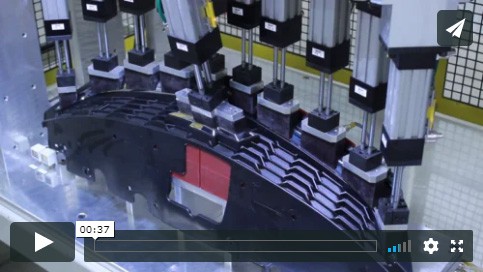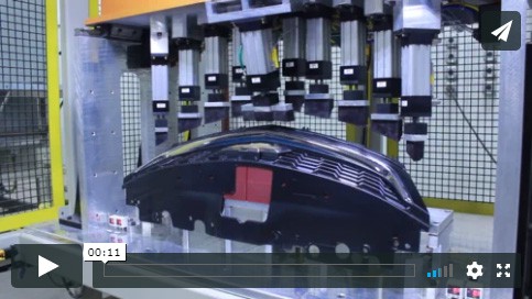 Our customer needed to produce two versions of a composite automotive part that required the routing of 100 holes and the application of 65 float nuts along with some rivet studs. In addition, they wanted a fully automated solution with +0.25mm tolerance on the holes, zero dust emission and a cycle time of just over three minutes. The customer thought it would take four machines to accomplish this.
