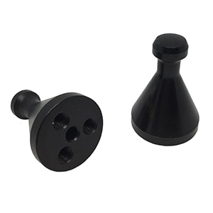 The Cylinder Lock is designed to receive and mate with a conical male knob. Positively locked in a static state, the Cylinder Lock actuates when air pressure is applied to release or receive the knob. The Cylinder Lock locates and positions the knob to within 0.0002″ with a holding force of 2,700 pounds.