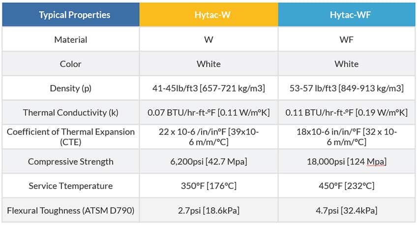 We offer both 350° F (177 C)  and 450° F (232 C)  syntactic foam materials to fit your a wide range of service temperatures.  Please contact us for help finding the right material for your application.